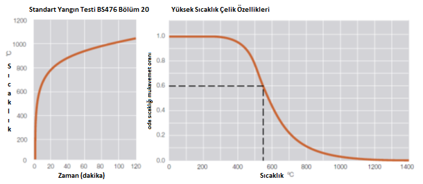 Tüm malzemeler ısındıklarında zayıflarlar. Yüksek sıcaklıkta çelik mukavemeti detaylı şekilde tanımlanmış ve 550ºC’de çelik yapının oda sıcaklığındaki dayanımının %60’ını koruyabileceği bilinmektedir. Bunun önemli olmasının sebebi tasarımın temeli olarak kullanılan izin verilebilir gerilme, izin verilen maksimum gerilme olarak yaklaşık oda sıcaklık dayanımının %60’ı kadardır. Bu çelik bir yapının 550ºC’de çökmeye başlamadan önce dayanacağı en yüksek veya kritik sıcaklık olduğu göstermektedir. Son uluslararası araştırmalar gösteriyor ki çelik bir yapı elemanının sınır sıcaklığı 550ºC’de sabit olmayıp ısı profili ve yük olarak iki çeşit faktöre göre değişmektedir.
