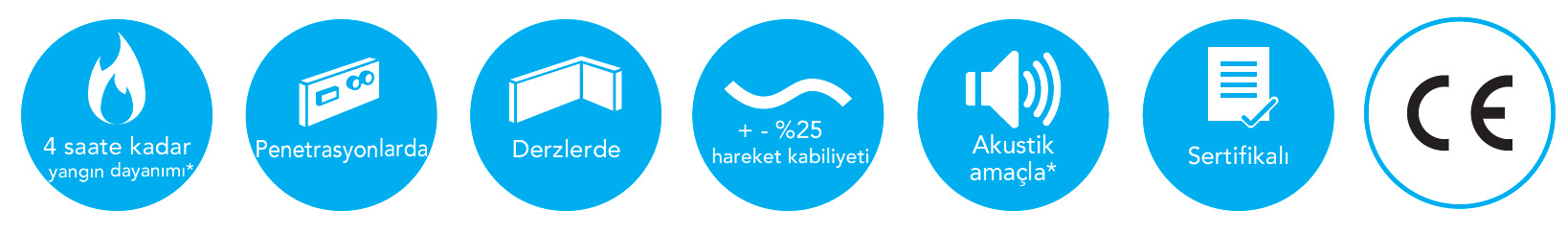 yüksek esnekliğe sahip, yangın durdurucu taşyünü panel boyasıdır. +- %25 hareket kabiliyetine shiptir. Elektrik, mekanik ve elektromekanik şaftlarda; duvar-duvar, duvar-tavan derzlerinde ve cephe derzlerinde kullanılır.